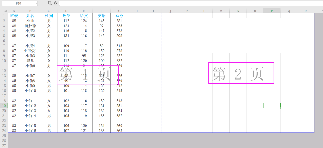 9.确定后,点击菜单栏中的“插入分页符”,完成时,表格就立马一分为二的打印成两页啦,如下图所示:“分页预览”的功能还是挺强大又方便滴,有需要的小伙伴,不妨试试用下哦!