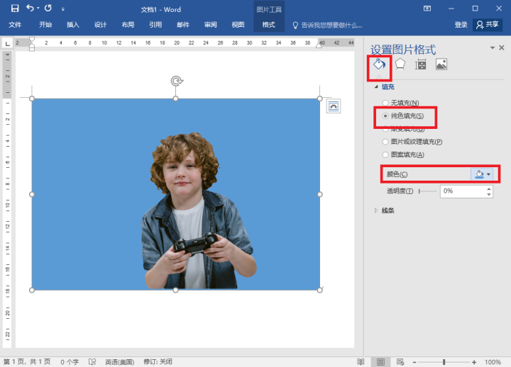 接着我们点击【填充】选择【纯色】再找到你需要的背景颜色就完成啦。