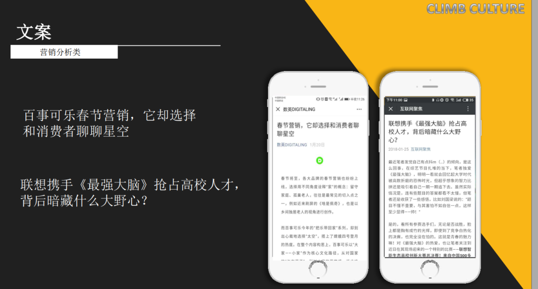 比如客户是地产相关的,那么你在前面几行就要有地产相关的案例,让客户一眼就觉得不错。
