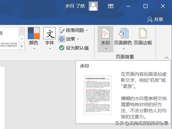 在Word2016版本中,存在这样一个选项卡。它可以为文档设计主题、更改页面背景,它就是【设计】选项卡。
