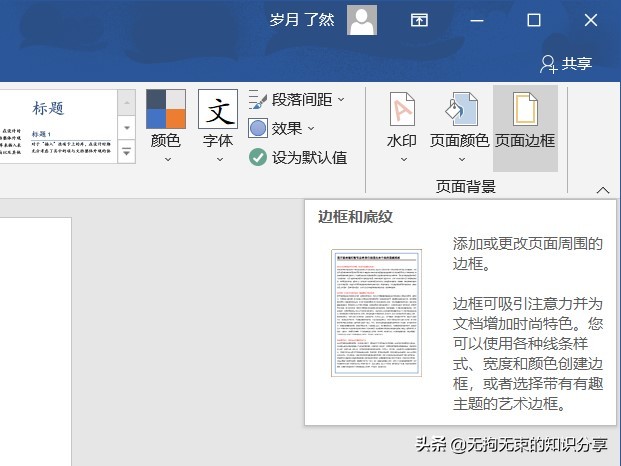 3)页面边框:添加或更改页面周围的边框(边框可以吸引注意力并为文档增加时尚特色)。