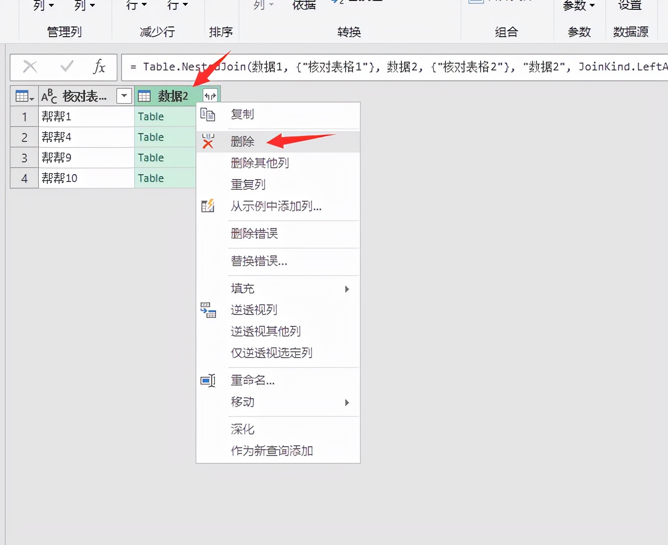 メ进入PQ编辑器,点选数据1——合并查询——将查询结果合并新查询。メ