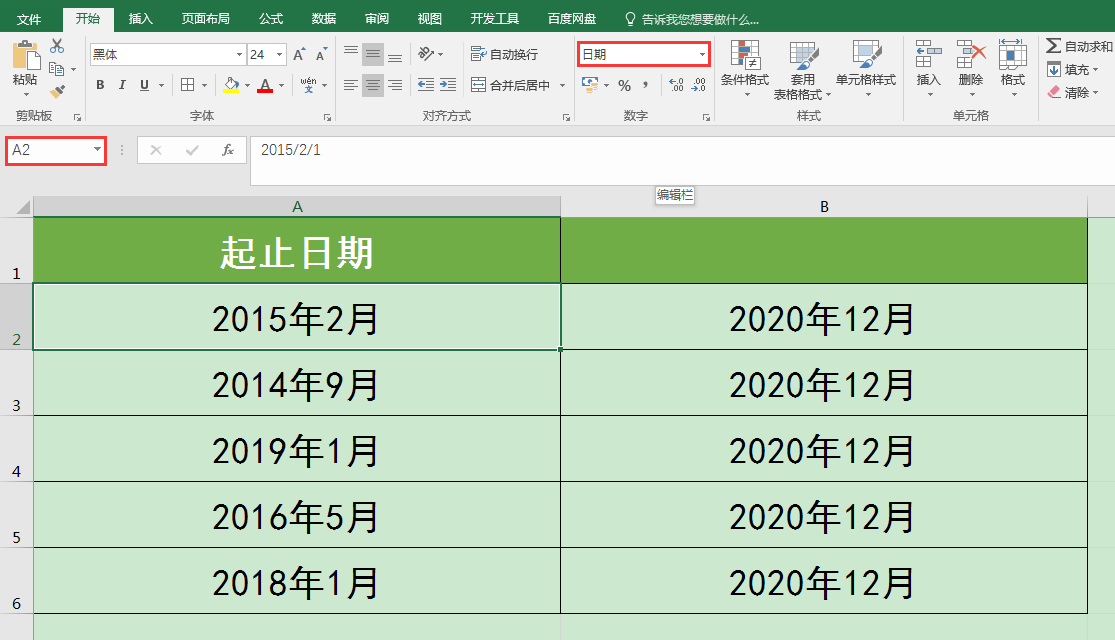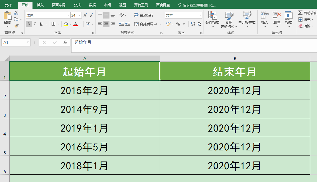 1.下面图1显示的表格中,A列"起止日期"将两个日期合并在一个单元格中,短横线"-"前面是起始年月,后面是结束年月,但这样将两个日期合并在一个单元格中会导致后期要进行计算分析时很不方便。