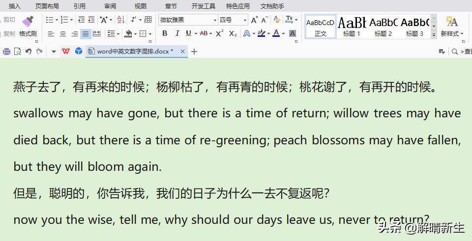 在Word中录入中英文时,默认二者字体相同。看起来中规中矩,并不好看。