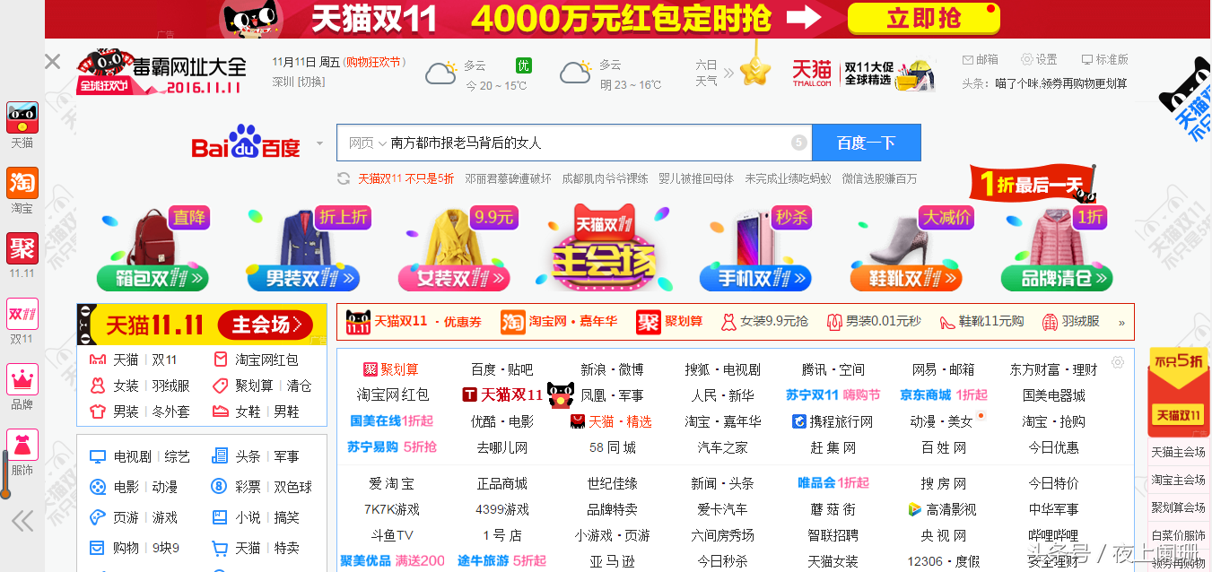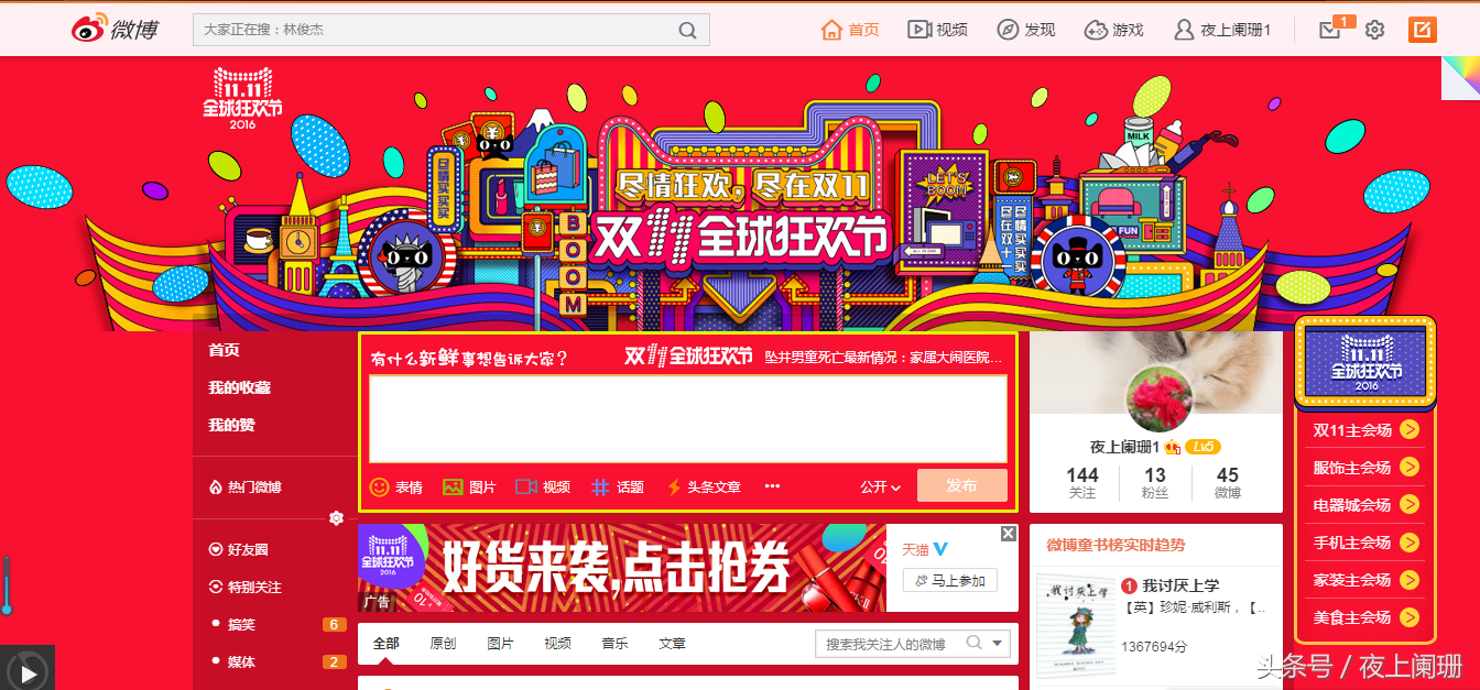 2.打开电脑,双11弹屏无处不在打开网页,双11广告红红火火的弹出来打开微博,依然是红火一片,热闹得像过年一样