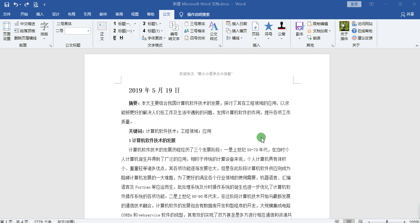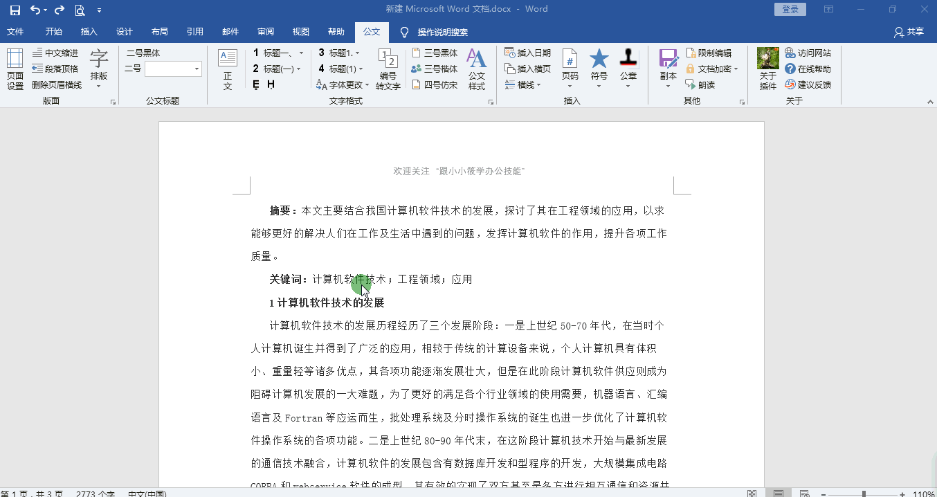 今天小编跟大家分享一款Word插件——小恐龙公文排版助手。几万字的论文,也可以让你在几分钟就完成文件格式的排版。