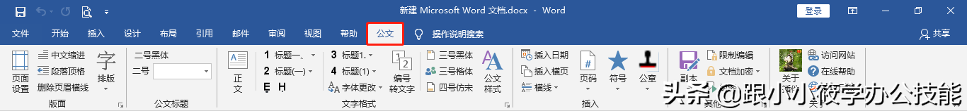 3.安装完成之后,打开Word或者WPS,可以看到菜单栏多了一个“公文”选项卡,即安装成功。