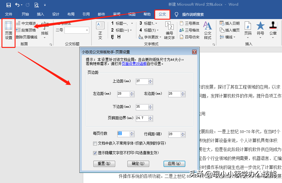 点击“页面设置”,可以直接设置页边距,每页行数,行间距等。
