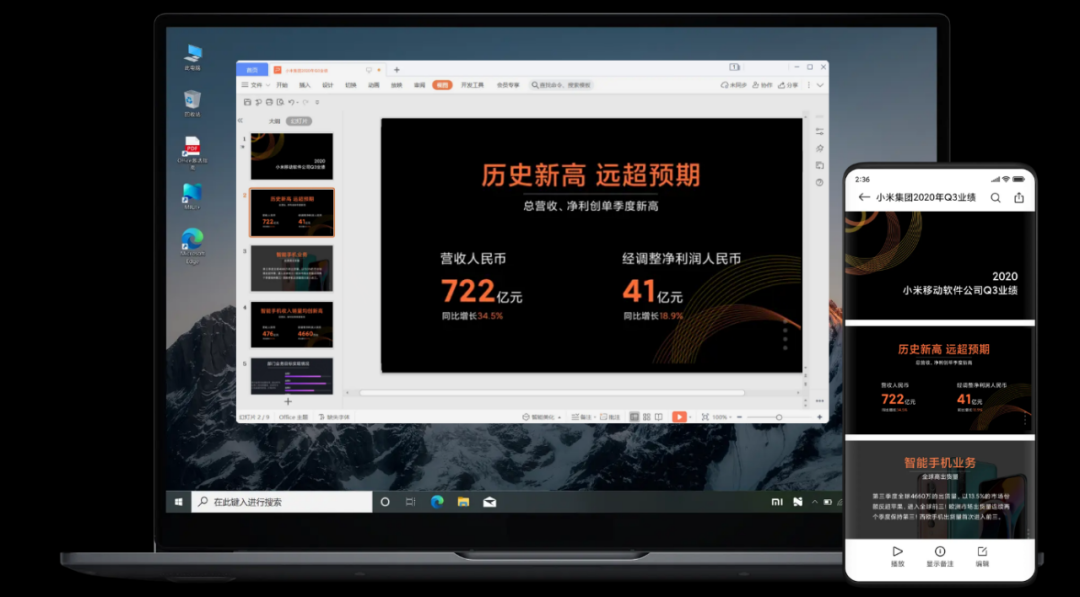 现阶段比较可行的方式是手机通过有线或者无线连接的方式将手机或者平板投屏到电脑,在电脑端可以内嵌显示手机,而且电脑上可以操控手机,例如电脑上打开手机的文件进行编辑,这也是常说的多屏协同。电脑和手机之间可以快速互传数据,比如将电脑上图片拖拽到手机,或将手机的图片拖拽到电脑。这样做的目的其实也是在慢慢转移电脑的存储数据功能,把数据渐渐的集中转移到手机上来。