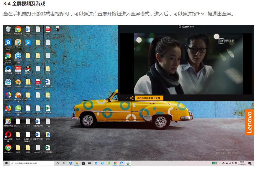 4、全屏视频及游戏(手机上玩游戏或看视频,电脑端全屏观看)