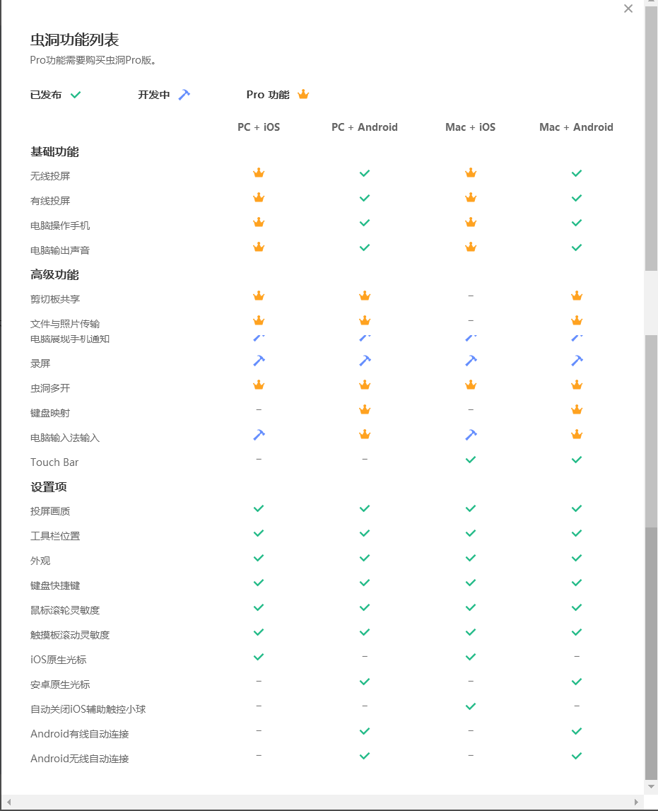 缺点:其他品牌的PC目前反应延迟性较大,体验不是特别好,电脑上的手机窗口没有虚拟按键,需要滑动手势,手机不能黑屏下操作。