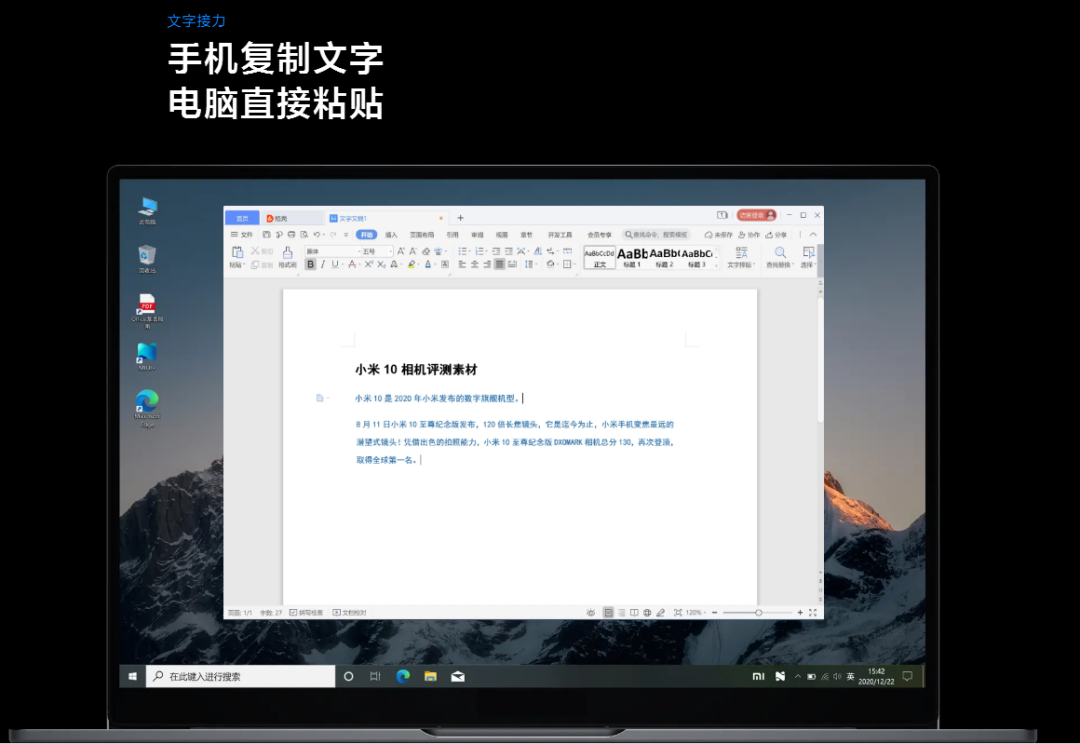 小米多屏协同实现的功能: