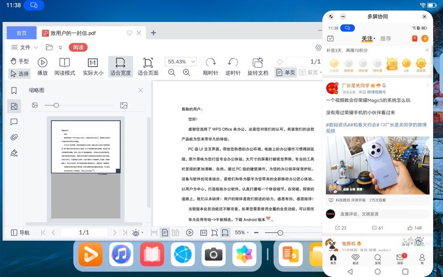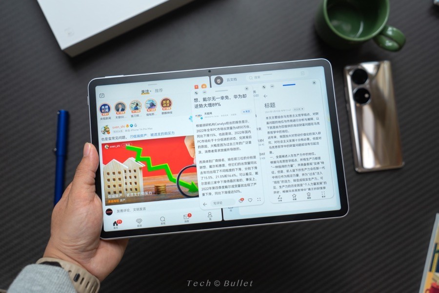 其次,你得让平板拥有高效的多任务能力。聊微信的时候需要浏览网页?还是看文献的时候需要做笔记?抑或是受够了潦草的平板软件生态?在用这台平板的时候,我惊讶于它接近 PC 的多任务操作,直接把平板这块不大不小屏幕的利用率给拉满了。