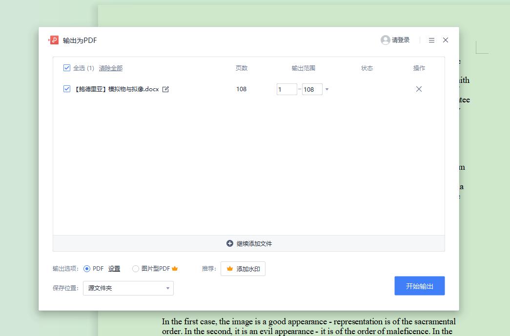 以Word文档为例,我们将一个Word文件导入到软件中。可以自定义转换页码和水印,也可导出成纯图片的PDF。