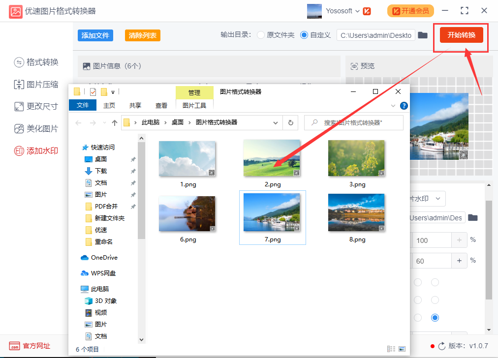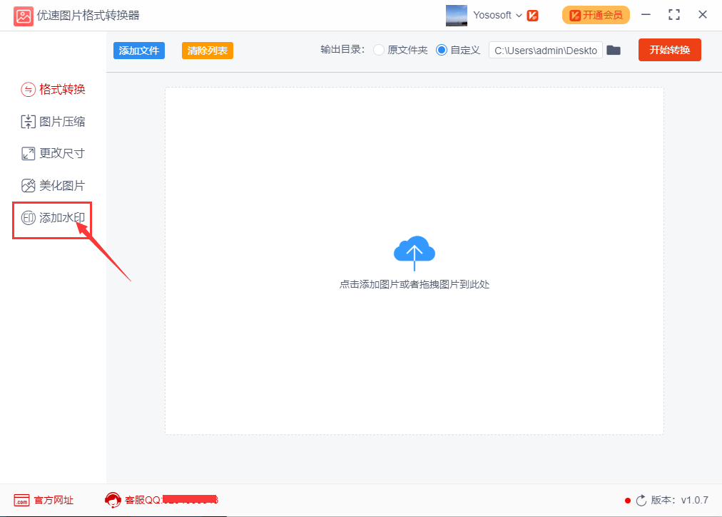 步骤1,安装打开优速图片格式转换器,然后点击左边下面的【添加水印】功能,进入下一步操作。