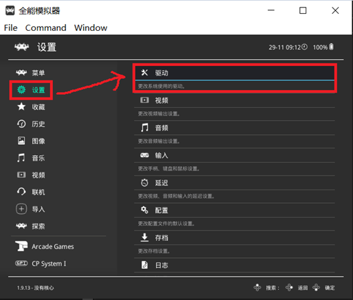 首先,我们进入设置菜单里的驱动选项。